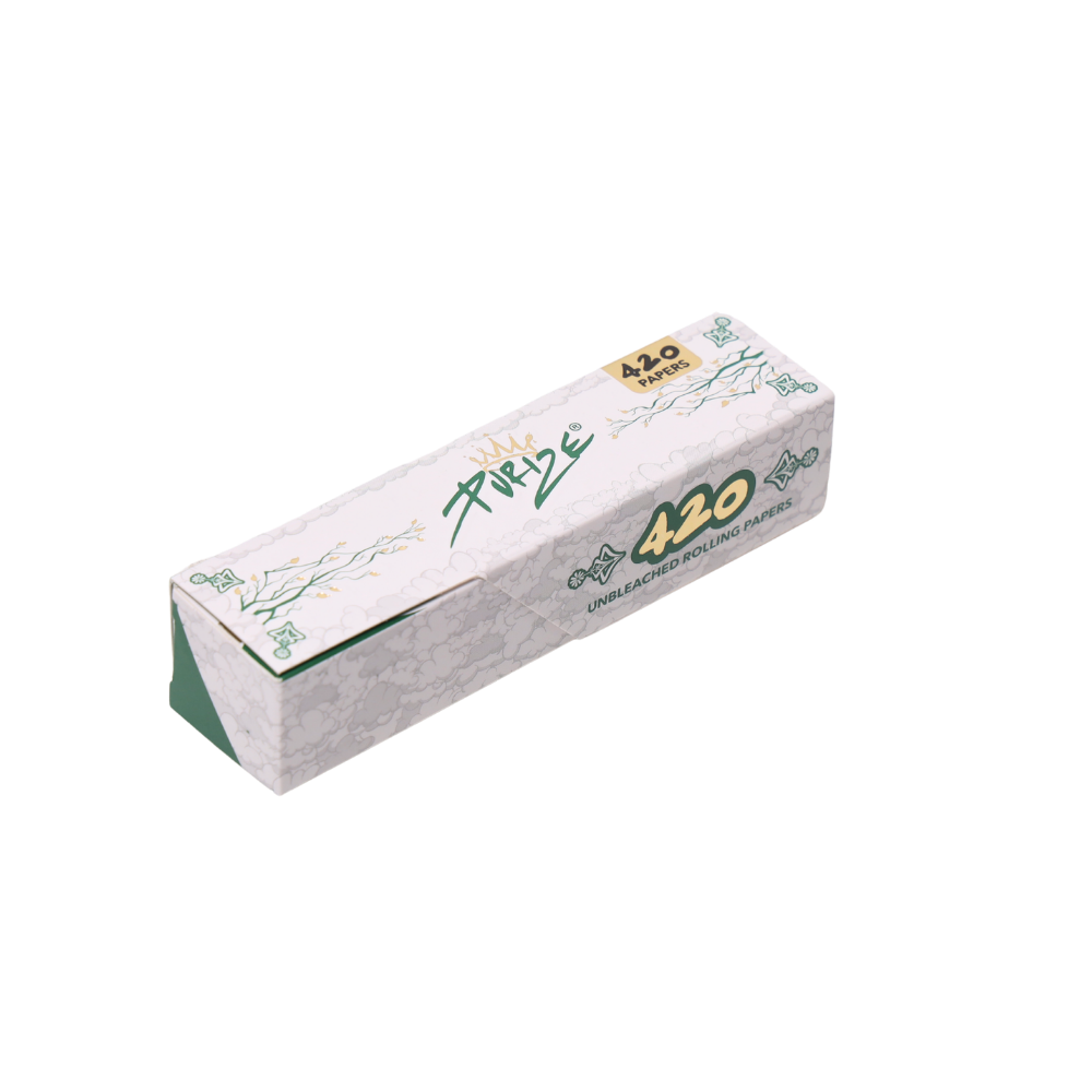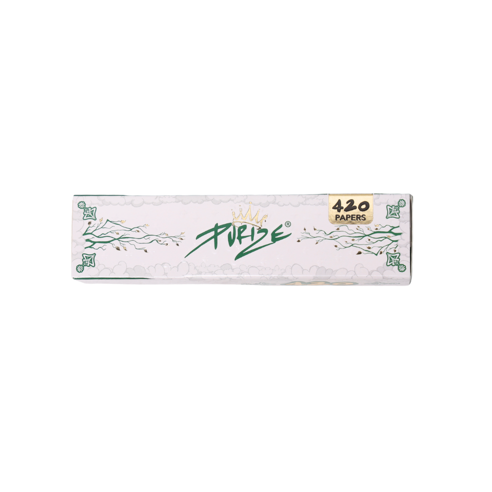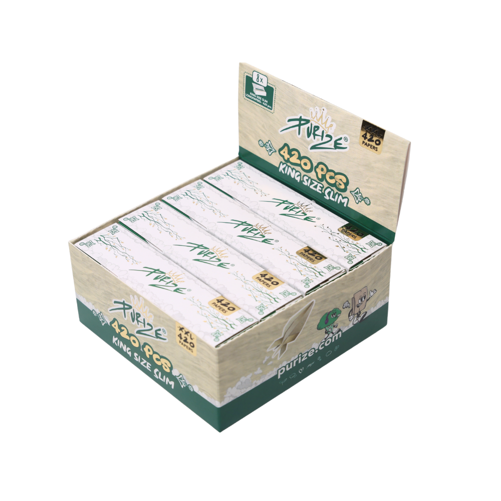 For the ultimate rolling pleasure: PURIZE® King Size Papers in 420 booklet! With the new PURIZE® 420 x King Size Slim maxi-pack you have a few days of peace and quiet to concentrate on the essentials, namely your medicine! Depending on how much you use, the new PURIZE® “maxi pack” should last a total of “10x” as long as your normal 42 king size slim pack. Are you looking for a paper that burns flawlessly and remains tasteless? PURIZE® has the solution: the King Size Papers with natural gumming – 100% vegetarian and organic. When it comes to the choice of paper, PURIZE® only thinks of the best for you: only using unbleached paper made from natural fibres, which benefits the characteristic, natural brown shade of the papers. The advantages: * Best burning behaviour * Neutral taste * High quality * Grammage: 14.5 g/m2 * Innovative 420 leaf booklet for long-lasting enjoyment